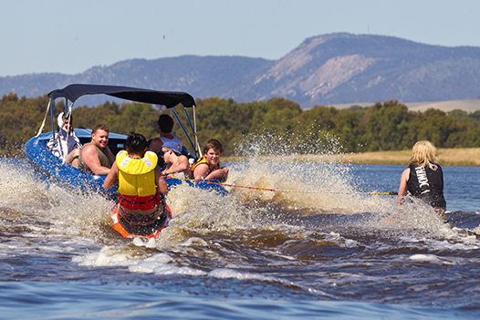 Maddy Hovey and Eliza Seres take their turn on the kneeboards